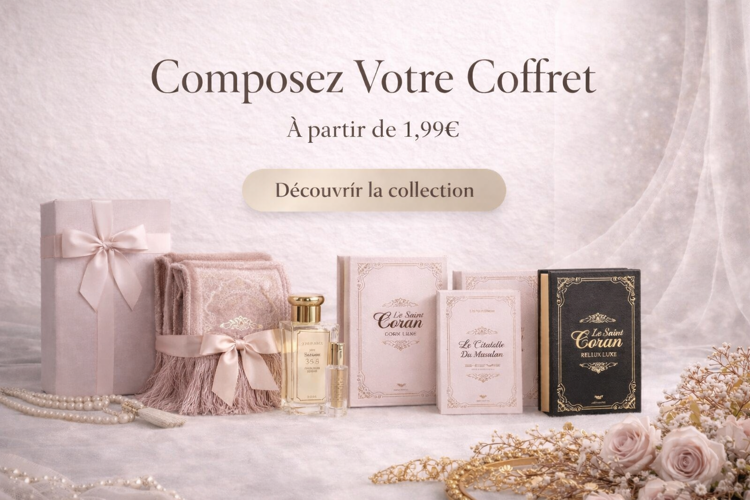 Sélectionnez chaque élément selon vos envies : tapis, tasbih, musc, Coran ou Citadelle.